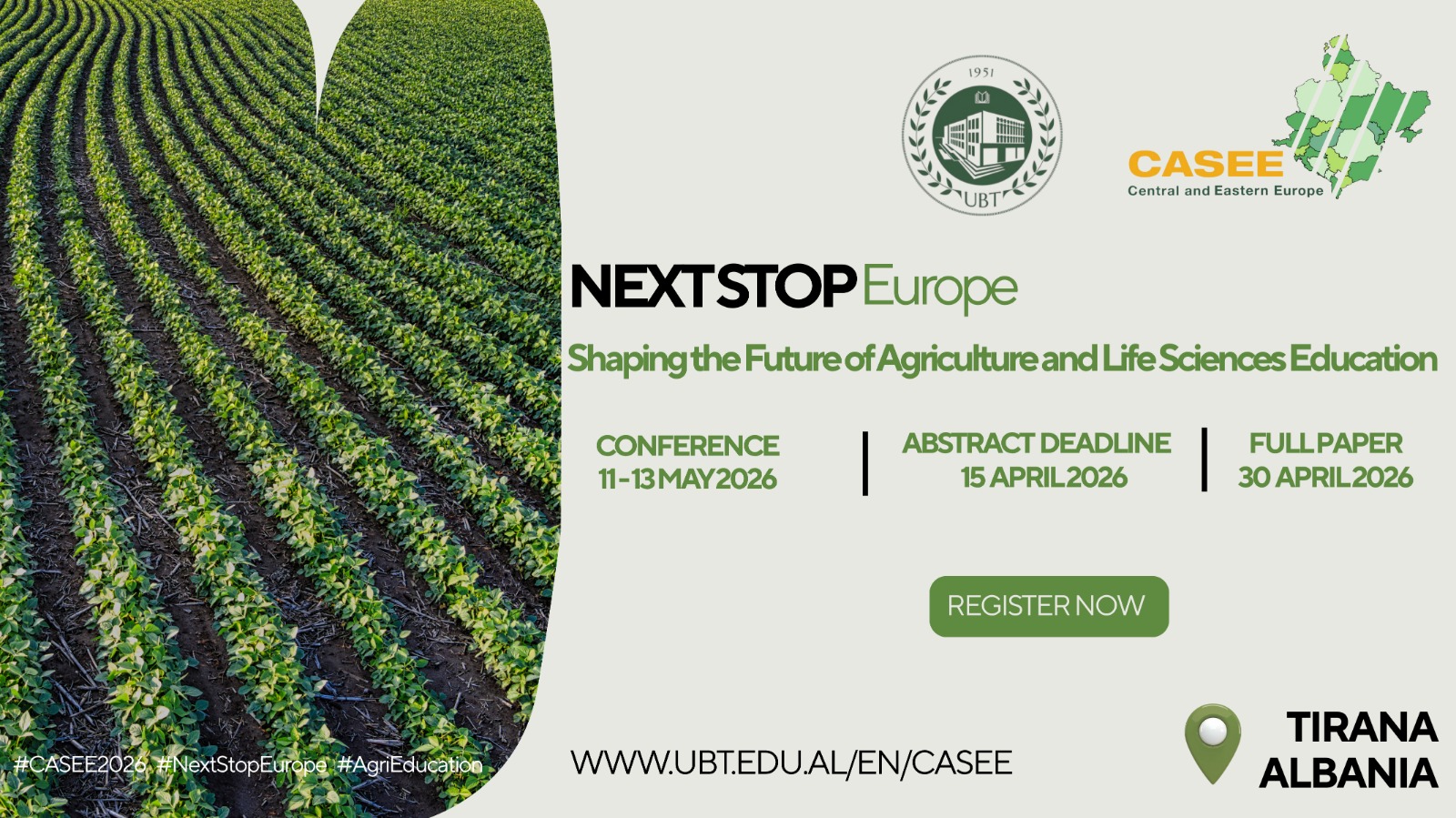 University of Osijek, Faculty of Agrobiotechnical Sciences Osijek, a founding member of the Association of Life Sciences Universities for Central and Eastern Europe-CASEE (ICA Regional Network), invites you to the 16th edition of the annual CASEE Conference, which will take place in Tirana, Albania, from May 11–13, 2026.